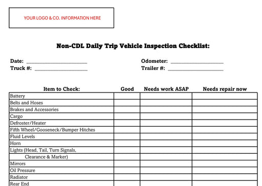 Free Non CDL Trip Inspection Checklist