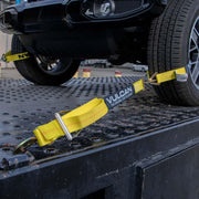• Easy to use - The heavy duty D rings on the axle straps easily accept snap hooks, grab hooks, t-hooks or j-hooks, and you can even feed a chain through them. Just loop the strap around any axel or through a rim and bring the D rings back together. Use the snap hook ratchet straps to apply tension to the axle straps and connect to almost any tie down point. Whatever your application is, you will always have the right strap on hand to tie your vehicle down.