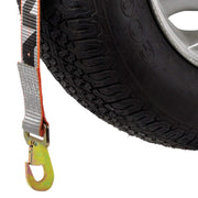 • Easy to use - These car tie down units include a basket style harness that fully encapsulates the tire. The snap hooks on the strap ends mate easily with most popular wheel lifts and tow dollies. The smooth D rings reduce strap wear.
