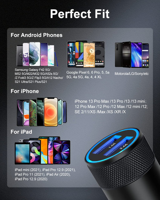 AINOPE Car Charger Adapter【Smallest Metal】 4.8A Cigarette Lighter USB Car Charger Adapter Dual Port 12V USB Outlet Flush Fit for iPhone 16 Pro Max/15/14 iPad Air Samsung Galaxy S25 S24 Ultra,Black