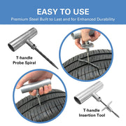 • 【Premium Quality】-- Our T-handle Tools are made of the high strength rustless zinc alloy, can easily pierce the plugs and quickly finished the repair work. Tire repair strips of best natural rubber are equipped with airtight bag, excellent ageing resistant performance.